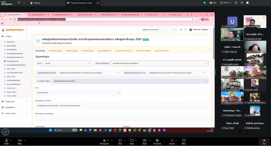 กองพัฒนาคุณภาพ ได้จัดอบรมการกรอกข้อมูลผลลัพธ์การเรียนรู้ระดับหลักสูตร (PLOs) และระดับรายวิชา (CLOs) กำหนดจัดอบรมในวันที่ 3, 20, 22 – 24 เมษายน พ.ศ. 2569 ผ่านระบบออนไลน์ Zoom Meeting
