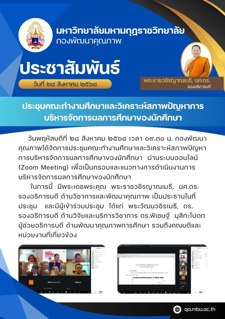ประชุมคณะทำงานศึกษาและวิเคราะห์สภาพปัญหาการบริหารจัดการผลการศึกษาของนักศึกษา วันที่ 28 ส.ค. 68 September 25, 2568September 25, 2025 Monti ข่าว/กิจกรรม FacebookFacebookXTwitterLINELine